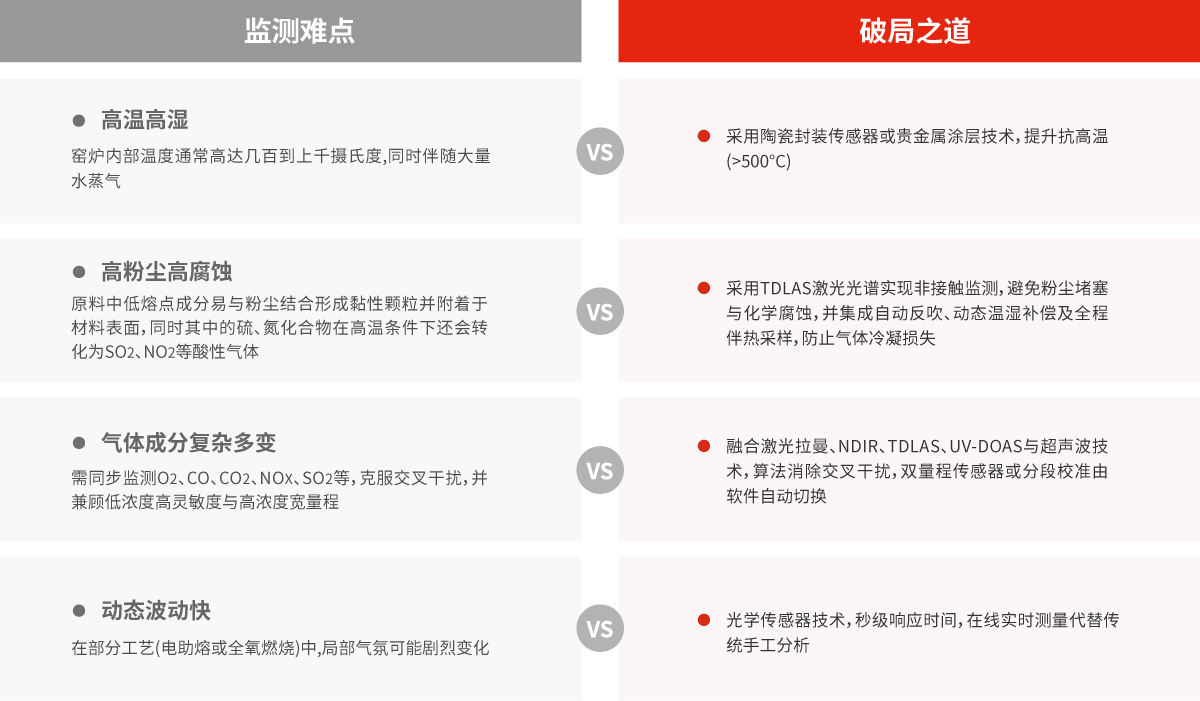 面對工業(yè)窯爐燃燒過程中高溫高濕、高腐蝕、高粉塵及氣體交叉干擾等嚴峻挑戰(zhàn),四方光電(武漢)儀器有限公司依托自主先進技術(shù)與創(chuàng)新方案,一舉突破傳統(tǒng)監(jiān)測瓶頸,為工業(yè)窯爐提供高效、精準、可靠的氣體監(jiān)測破局之道。